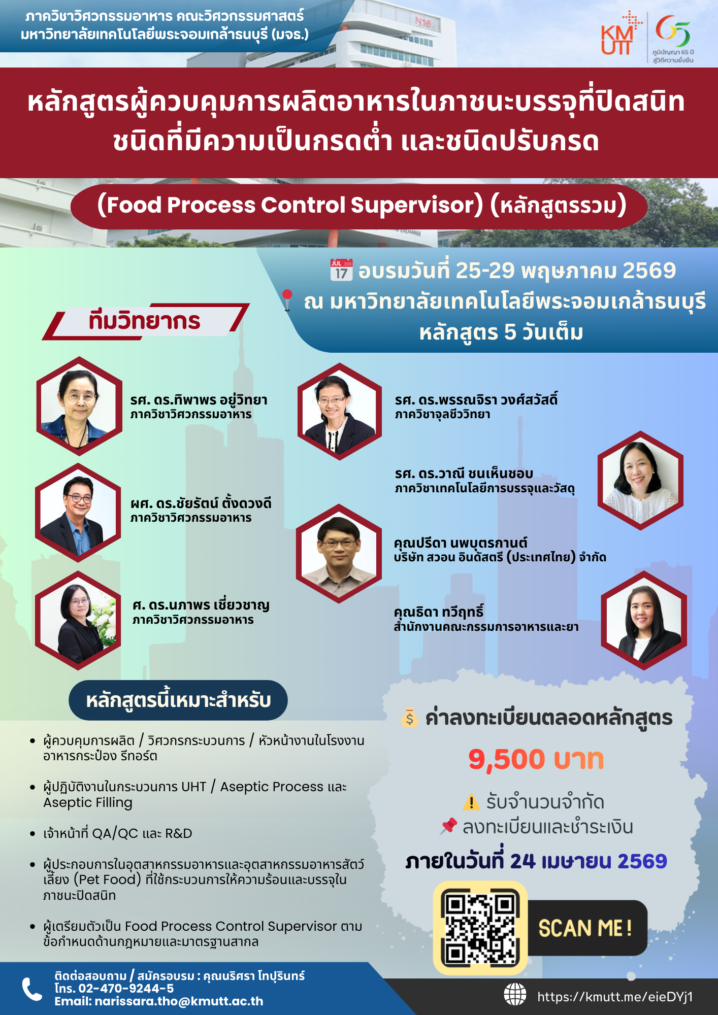 หลักสูตรการฝึกอบรมสำหรับผู้ควบคุมการผลิตอาหาร (Food Process Control Supervisor)